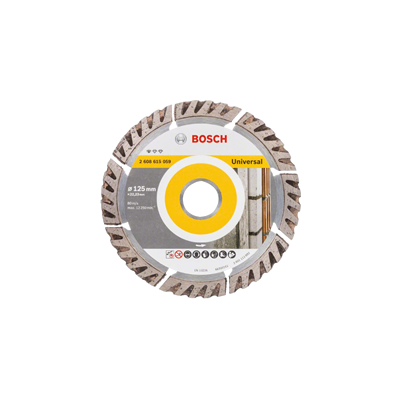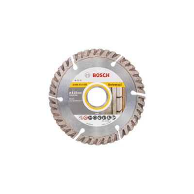 O disco de corte com diamante Standard for Universal proporciona cortes fiáveis em todos os materiais de construção. A matriz de diamante otimizada oferece resultados sólidos graças aos padrões de alta qualidade do disco. O centro de competência de diamante da Bosch na Suíça garante estes padrões ao proporcionar qualidade consistente ao longo do tempo. Utilize este disco para cortar materiais de construção, como betão e alvenaria.