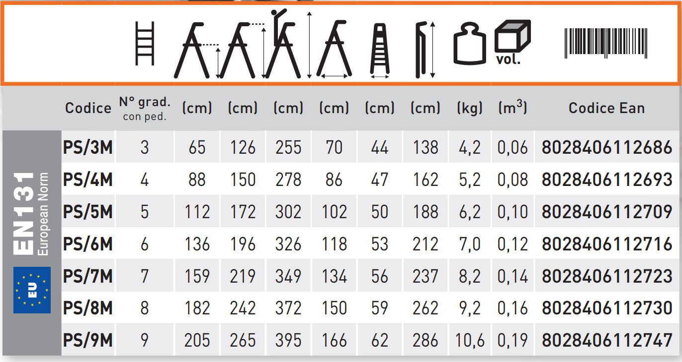 - 8 degraus: Altura (metros) 1.82m /// Peso - 9.2 kg