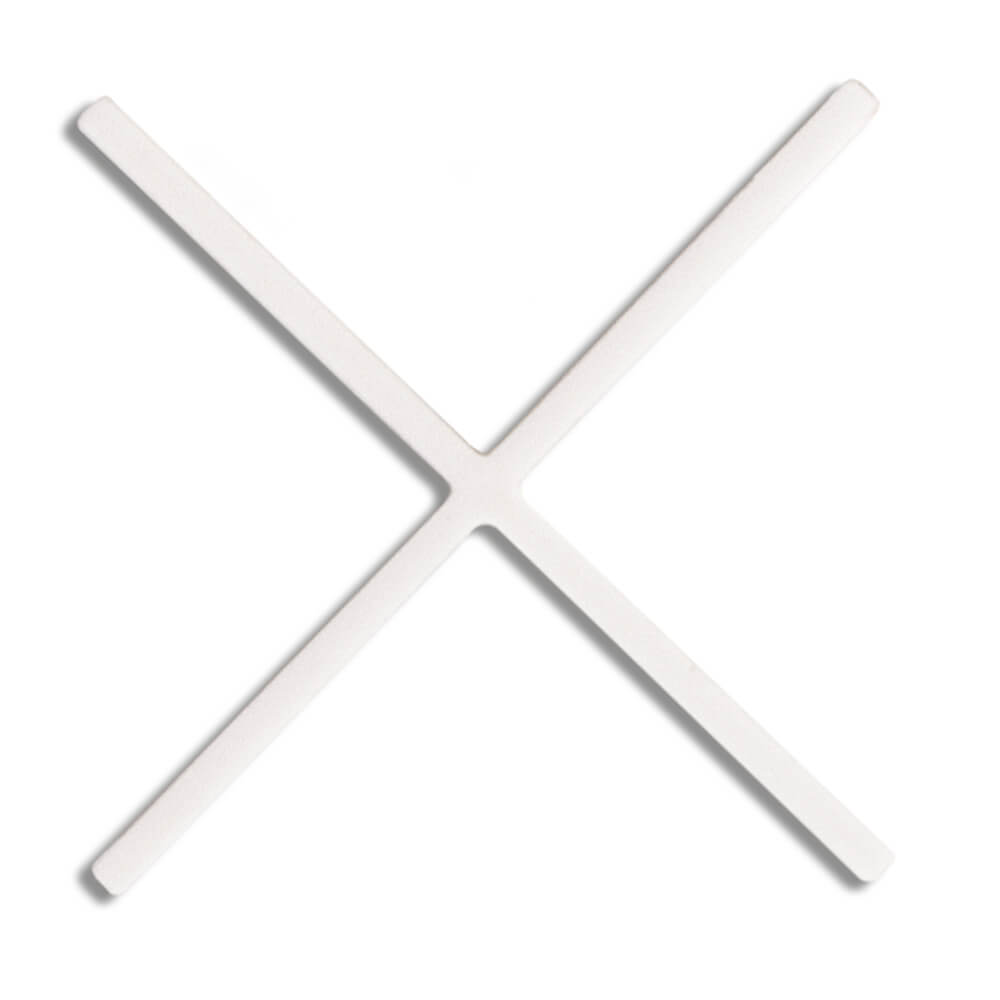 A geometria interna das cruzetas para juntas de 5 a 12 mm é oca e possui um design com reforços internos que lhes permite resistir a tensões e evitar o seu esmagamento. Este desenho oco facilita a entrada da argamassa comum e, se o tipo de instalação permitir, deixa a cruzeta dentro da junta de instalação sem afetar a integridade da junta no futuro.