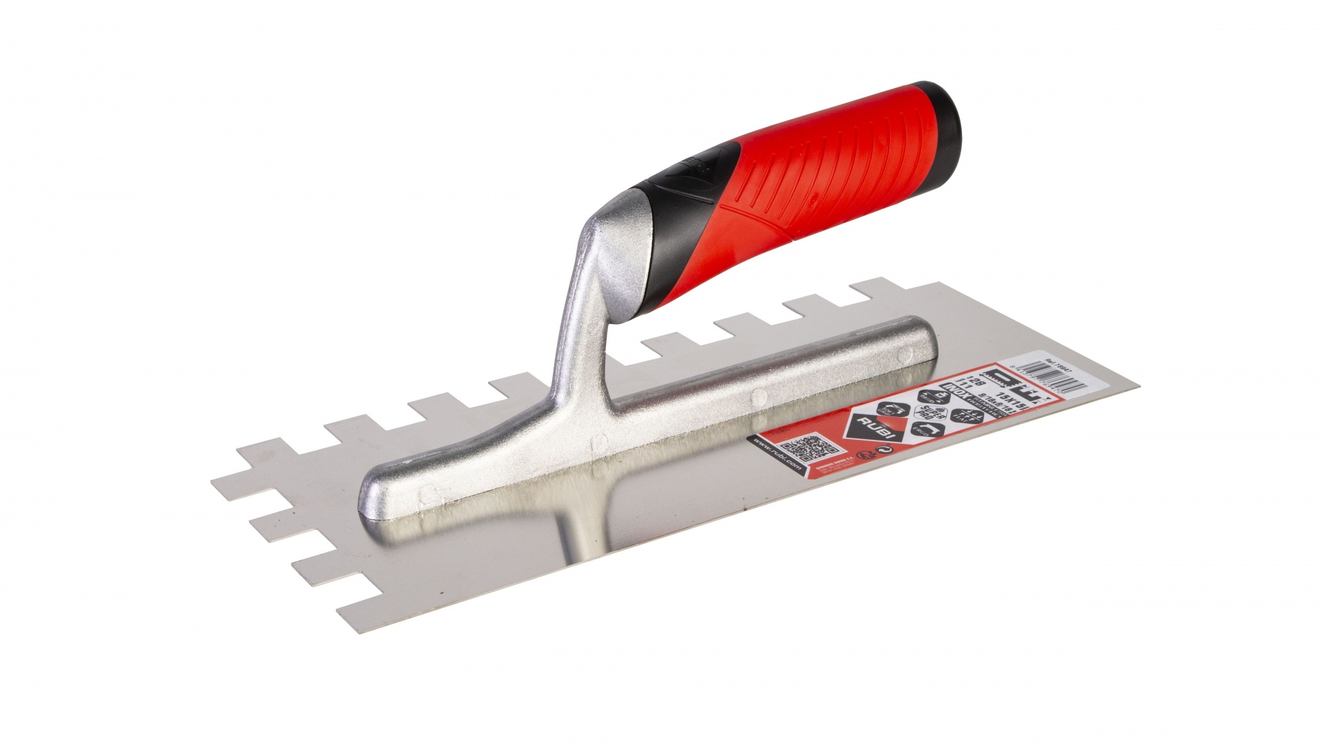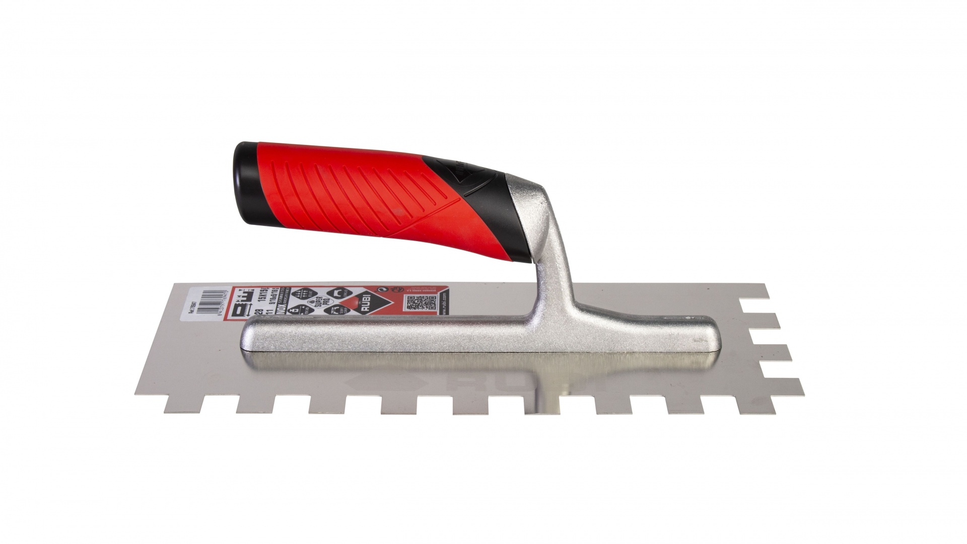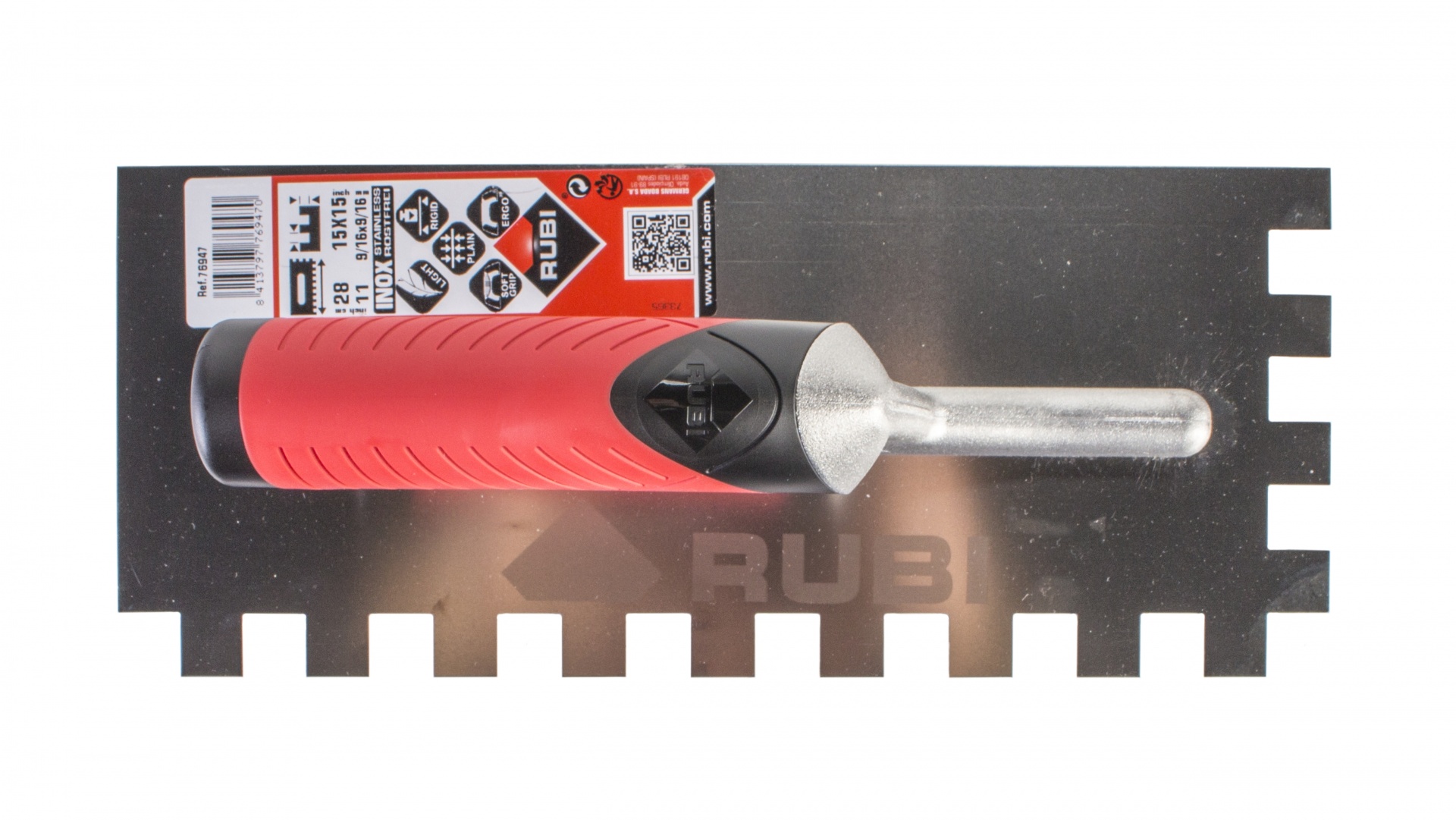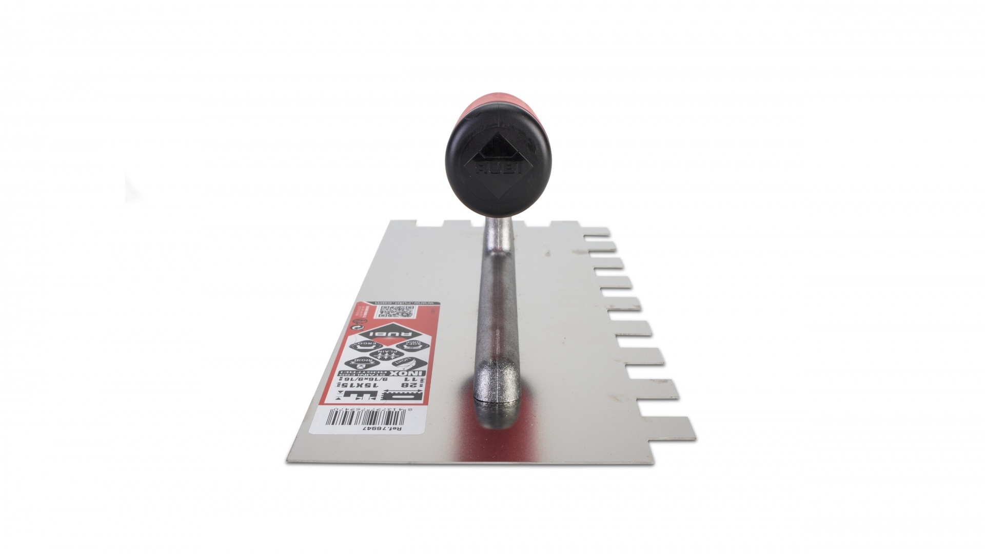 As espátulas e pentes com cabo RUBIFLEX aberto, têm uma lâmina de aço especial de alta resistência ao desgaste, com protecção contra a corrosão mediante verniz incolor (AÇO). Há também modelos com lâmina de aço inox especial, de alta resistência ao desgaste (INOX).