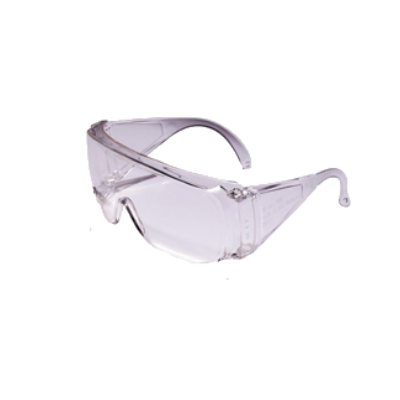 Oculos tipo 'visitador' envolvente. Guardas laterais em policarbonato.